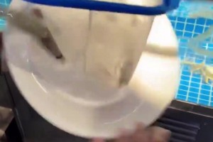 男子捞出几只虾,结果下一秒被虾吓到,失手把盘子摔碎