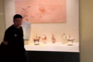 沉浸式参观文物,突然转头看着黑T恤男子,网友:以为穿越了